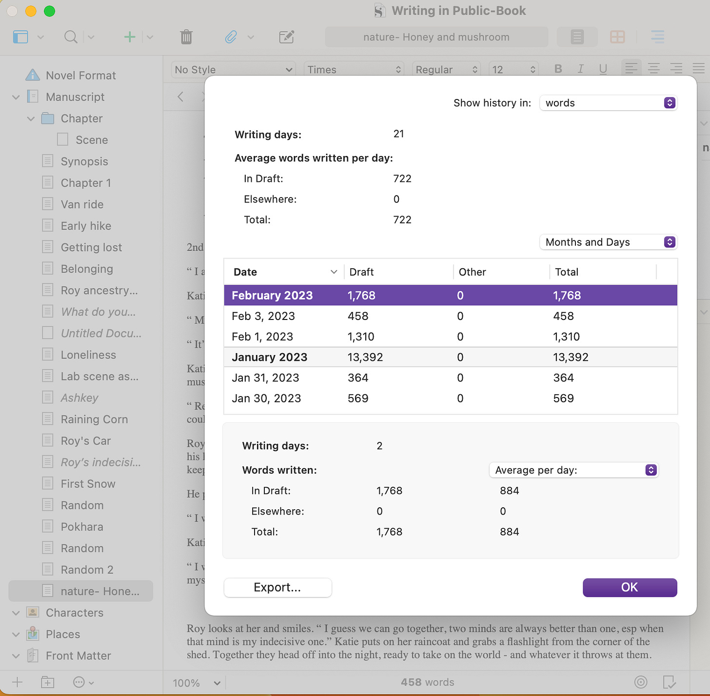 Slowly the story is starting to take some shape, albeit there are many tangents at the moment. There is something about the first of the month that helps me reset. My 2,701 words this week helped me make up for last week. January's word total was an encouraging reminder of the progress I had made and provided further motivation to push forward into February.